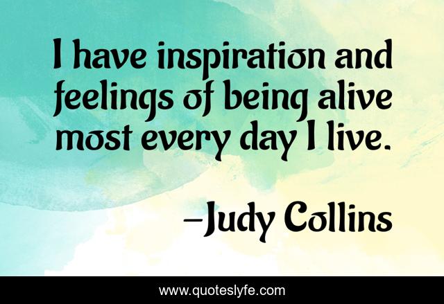This page presents the quote "I have inspiration and feelings of being alive most every day I live.". Author of this quote is Judy Collins. This quote is about live, day, every day,.