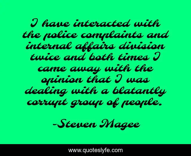 "Steven Magee Quotes." Quoteslyfe.com, 2025. Sun. 07 Dec. 2025. <https://www.quoteslyfe.com/quote/I-have-interacted-with-the-police-complaints-199785>.