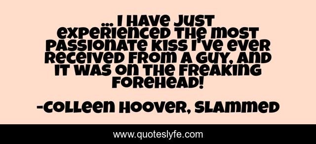 This page presents the quote "... I have just experienced the most passionate kiss I've ever received from a guy, and it was on the freaking forehead!". Author of this quote is Colleen Hoover, Slammed. This quote is about way-too-cute, gentleman, perfect-kiss, hilarious,.