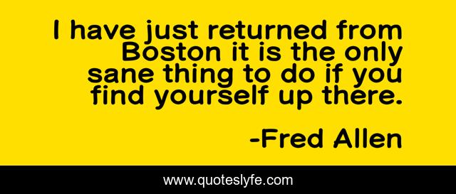 This page presents the quote "I have just returned from Boston it is the only sane thing to do if you find yourself up there.". Author of this quote is Fred Allen. This quote is about travel, cities,.