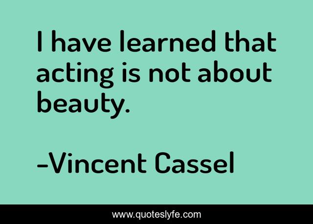 This page presents the quote "I have learned that acting is not about beauty.". Author of this quote is Vincent Cassel. This quote is about acting, i have learned,.