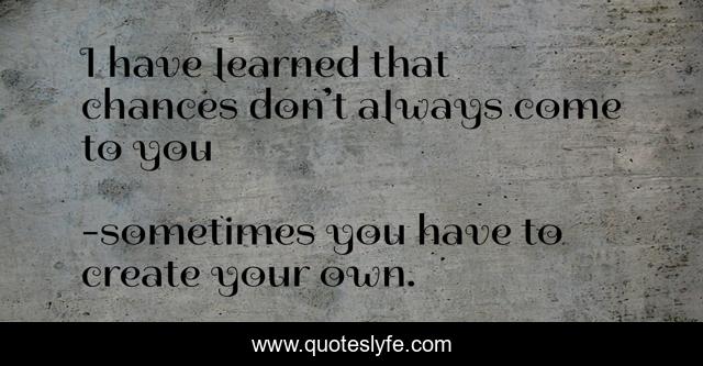 This page presents the quote "I have learned that chances don’t always come to you". Author of this quote is sometimes you have to create your own.. .