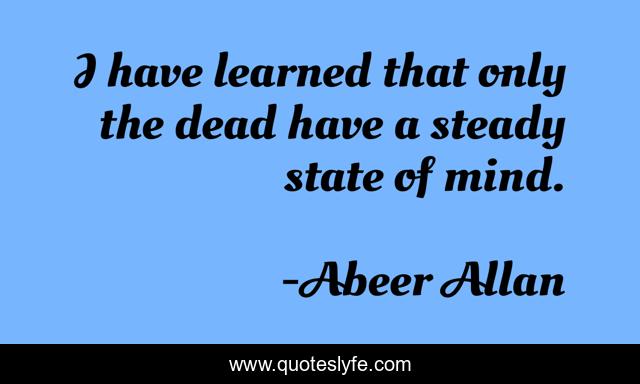 This page presents the quote "I have learned that only the dead have a steady state of mind.". Author of this quote is Abeer Allan. This quote is about love, life, mind, soul, affection,.