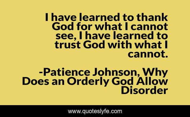"Patience Johnson, Why Does an Orderly God Allow Disorder Quotes." Quoteslyfe.com, 2025. Fri. 05 Dec. 2025. <https://www.quoteslyfe.com/quote/I-have-learned-to-thank-God-for-20613>.