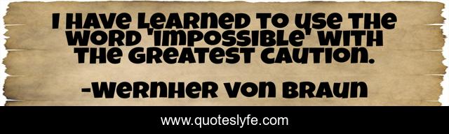 This page presents the quote "I have learned to use the word 'impossible' with the greatest caution.". Author of this quote is Wernher von Braun. This quote is about impossible, greatest,.