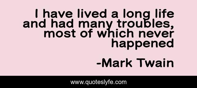 This page presents the quote "I have lived a long life and had many troubles, most of which never happened". Author of this quote is Mark Twain. This quote is about enthusiasm, philosophy, self-awareness, inspirational,.