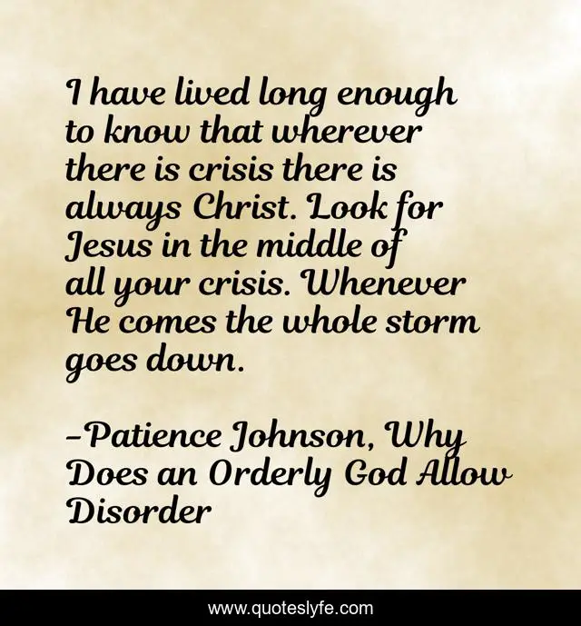 "Patience Johnson, Why Does an Orderly God Allow Disorder Quotes." Quoteslyfe.com, 2025. Sat. 06 Dec. 2025. <https://www.quoteslyfe.com/quote/I-have-lived-long-enough-to-know-45953>.