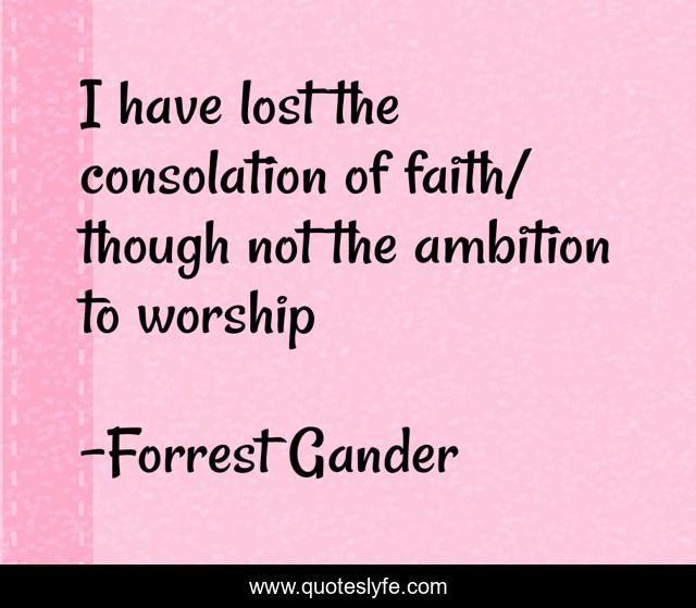 This page presents the quote "I have lost the consolation of faith/ though not the ambition to worship". Author of this quote is Forrest Gander. .