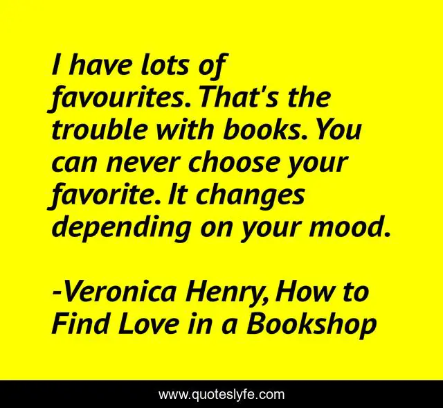 This page presents the quote "I have lots of favourites. That's the trouble with books. You can never choose your favorite. It changes depending on your mood.". Author of this quote is Veronica Henry, How to Find Love in a Bookshop. .