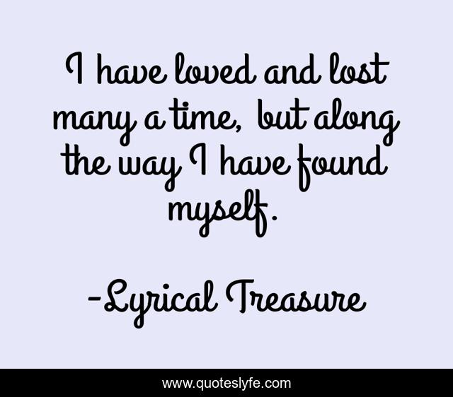 This page presents the quote "I have loved and lost many a time, but along the way I have found myself.". Author of this quote is Lyrical Treasure. This quote is about loss, heartbreak, love, affection, self-discovery,.
