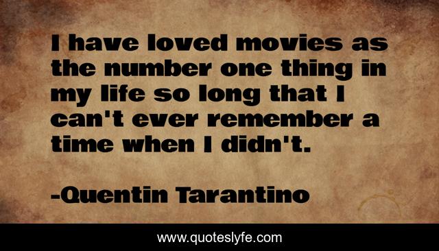 This page presents the quote "I have loved movies as the number one thing in my life so long that I can't ever remember a time when I didn't.". Author of this quote is Quentin Tarantino. This quote is about life, remember, time,.