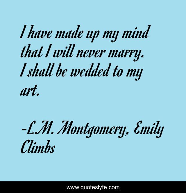 This page presents the quote "I have made up my mind that I will never marry. I shall be wedded to my art.". Author of this quote is L.M. Montgomery, Emily Climbs. This quote is about marriage, art, humor,.