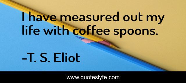 This page presents the quote "I have measured out my life with coffee spoons.". Author of this quote is T. S. Eliot. .
