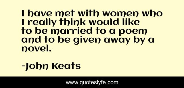 This page presents the quote "I have met with women who I really think would like to be married to a poem and to be given away by a novel.". Author of this quote is John Keats. .