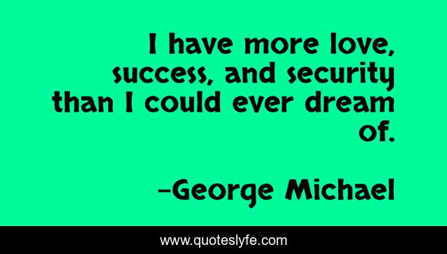 This page presents the quote "I have more love, success, and security than I could ever dream of.". Author of this quote is George Michael. This quote is about love, security, dream, affection,.