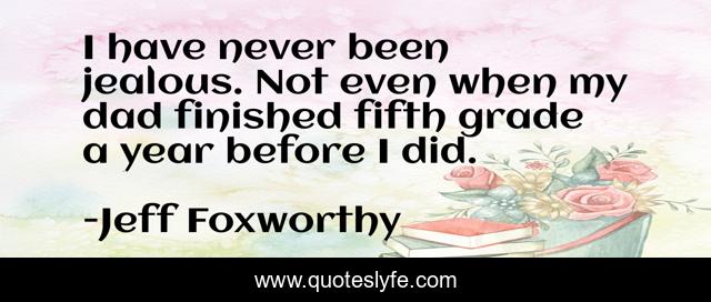 This page presents the quote "I have never been jealous. Not even when my dad finished fifth grade a year before I did.". Author of this quote is Jeff Foxworthy. This quote is about jealous, year,.