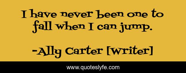 This page presents the quote "I have never been one to fall when I can jump.". Author of this quote is Ally Carter [Writer]. This quote is about jump, life, fall,.