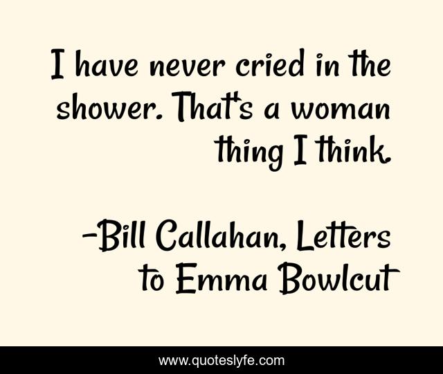 This page presents the quote "I have never cried in the shower. That's a woman thing I think.". Author of this quote is Bill Callahan, Letters to Emma Bowlcut. .