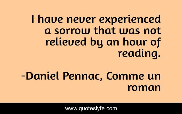This page presents the quote "I have never experienced a sorrow that was not relieved by an hour of reading.". Author of this quote is Daniel Pennac, Comme un roman. This quote is about sorrow, books, reading,.