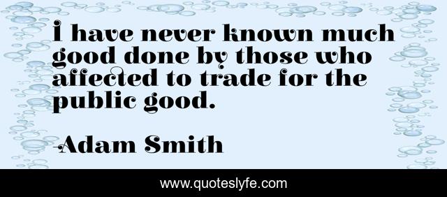 This page presents the quote "I have never known much good done by those who affected to trade for the public good.". Author of this quote is Adam Smith. This quote is about done, trade,.