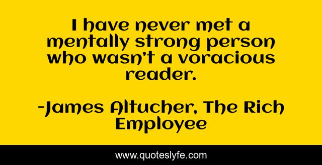 This page presents the quote "I have never met a mentally strong person who wasn’t a voracious reader.". Author of this quote is James Altucher, The Rich Employee. This quote is about voracious, intelligence, strength, mental, reader,.