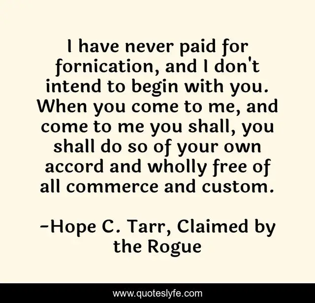 "Hope C. Tarr, Claimed by the Rogue Quotes." Quoteslyfe.com, 2025. Sat. 06 Dec. 2025. <https://www.quoteslyfe.com/quote/I-have-never-paid-for-fornication-and-213748>.