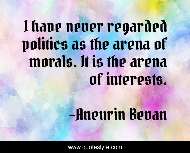 This page presents the quote "I have never regarded politics as the arena of morals. It is the arena of interests.". Author of this quote is Aneurin Bevan. .