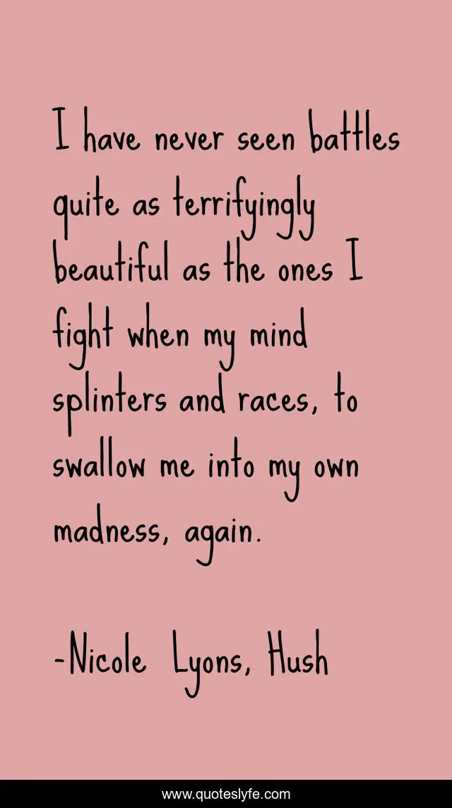 "Nicole Lyons, Hush Quotes." Quoteslyfe.com, 2025. Mon. 08 Dec. 2025. <https://www.quoteslyfe.com/quote/I-have-never-seen-battles-quite-as-57881>.