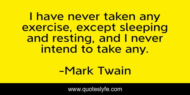 This page presents the quote "I have never taken any exercise, except sleeping and resting, and I never intend to take any.". Author of this quote is Mark Twain. This quote is about resting, exercise, sleeping,.