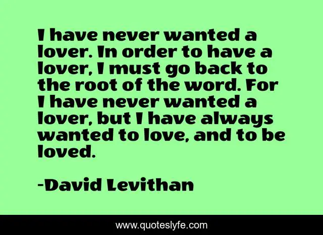 This page presents the quote "I have never wanted a lover. In order to have a lover, I must go back to the root of the word. For I have never wanted a lover, but I have always wanted to love, and to be loved.". Author of this quote is David Levithan. .