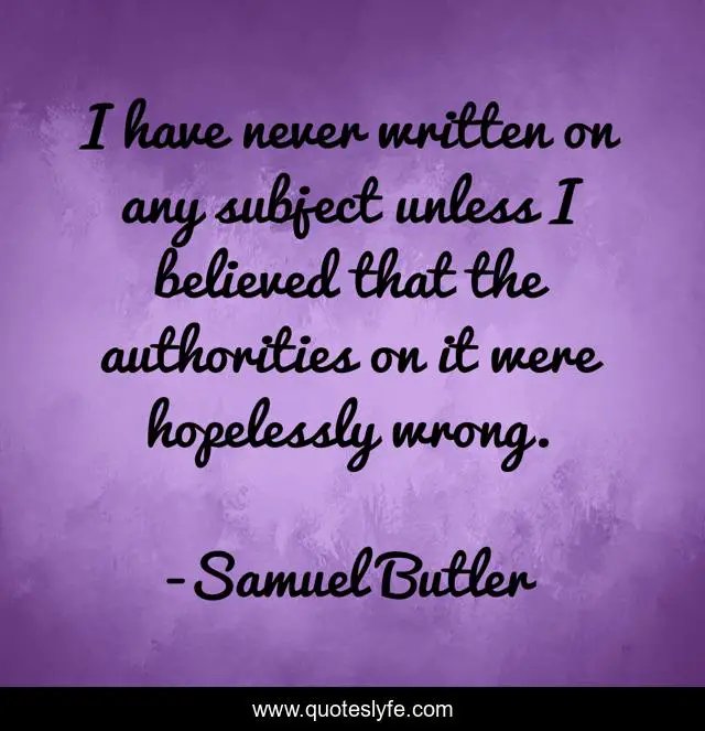 This page presents the quote "I have never written on any subject unless I believed that the authorities on it were hopelessly wrong.". Author of this quote is Samuel Butler. .