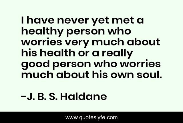 This page presents the quote "I have never yet met a healthy person who worries very much about his health or a really good person who worries much about his own soul.". Author of this quote is J. B. S. Haldane. .