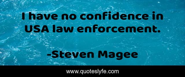 This page presents the quote "I have no confidence in USA law enforcement.". Author of this quote is Steven Magee. This quote is about enforcement, confidence, police, usa, sheriff, no, officer, corrupt, law,.