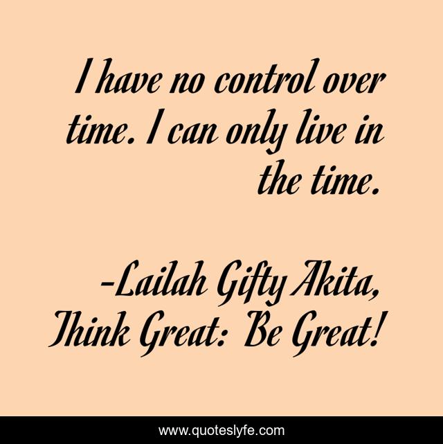 "Lailah Gifty Akita, Think Great: Be Great! Quotes." Quoteslyfe.com, 2025. Fri. 05 Dec. 2025. <https://www.quoteslyfe.com/quote/I-have-no-control-over-time-I-91727>.