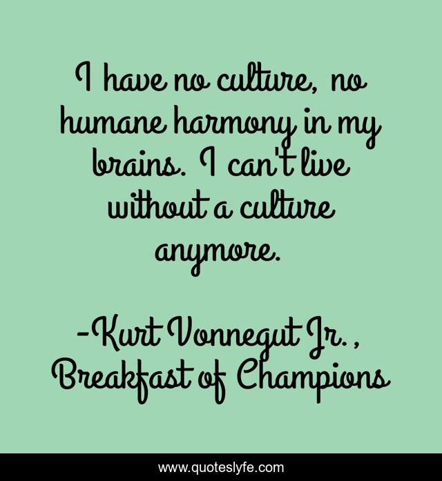 "Kurt Vonnegut Jr., Breakfast of Champions Quotes." Quoteslyfe.com, 2025. Tue. 09 Dec. 2025. <https://www.quoteslyfe.com/quote/I-have-no-culture-no-humane-harmony-160774>.