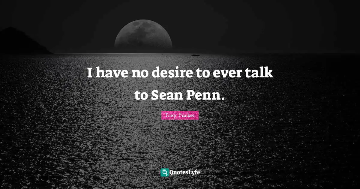 This page presents the quote "I have no desire to ever talk to Sean Penn.". Author of this quote is Trey Parker. This quote is about desire, sean,.