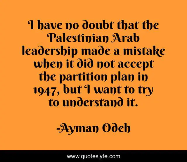 This page presents the quote "I have no doubt that the Palestinian Arab leadership made a mistake when it did not accept the partition plan in 1947, but I want to try to understand it.". Author of this quote is Ayman Odeh. This quote is about plan, mistake,.