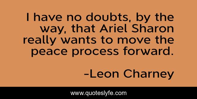 This page presents the quote "I have no doubts, by the way, that Ariel Sharon really wants to move the peace process forward.". Author of this quote is Leon Charney. This quote is about process, forward, way,.