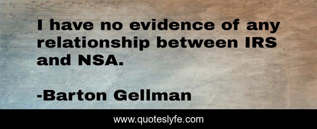 This page presents the quote "I have no evidence of any relationship between IRS and NSA.". Author of this quote is Barton Gellman. This quote is about nsa, evidence, between,.