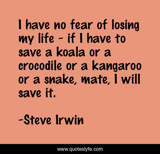 This page presents the quote "I have no fear of losing my life - if I have to save a koala or a crocodile or a kangaroo or a snake, mate, I will save it.". Author of this quote is Steve Irwin. .