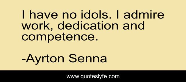 This page presents the quote "I have no idols. I admire work, dedication and competence.". Author of this quote is Ayrton Senna. This quote is about dedication, admire,.