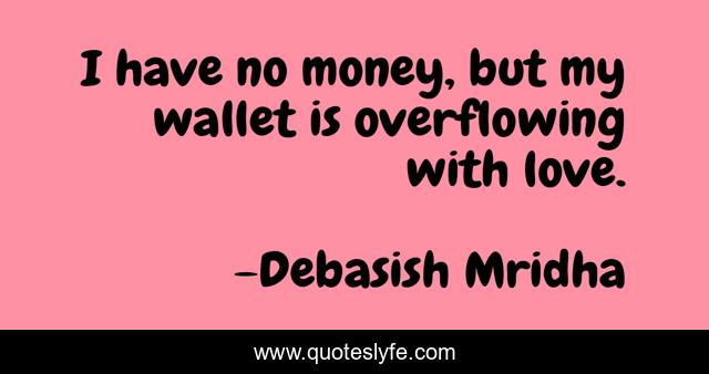 This page presents the quote "I have no money, but my wallet is overflowing with love.". Author of this quote is Debasish Mridha. This quote is about love, overflowing-with-love, philosophy, debasish-mridha, quotes, value-of-love, inspirational, enthusiasm, debasish-mridha-m-d,.