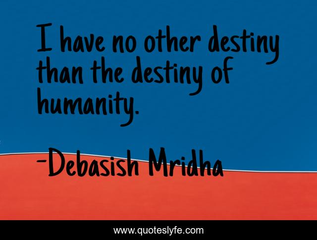 This page presents the quote "I have no other destiny than the destiny of humanity.". Author of this quote is Debasish Mridha. This quote is about life, love, destiny, inspirational, intelligence, philosophy, wisdom, hope, truth,.