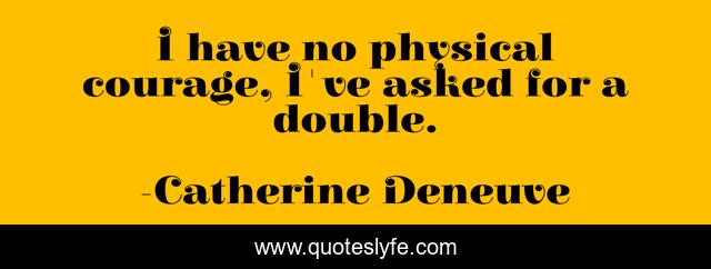 This page presents the quote "I have no physical courage, I've asked for a double.". Author of this quote is Catherine Deneuve. This quote is about double, physical,.