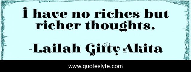 "Lailah Gifty Akita Quotes." Quoteslyfe.com, 2025. Fri. 05 Dec. 2025. <https://www.quoteslyfe.com/quote/I-have-no-riches-but-richer-thoughts-80345>.
