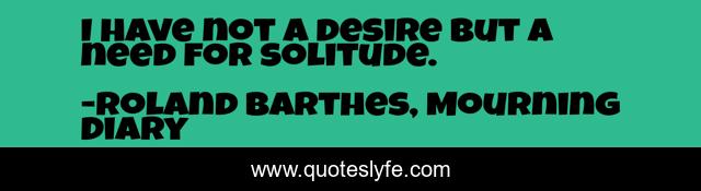 This page presents the quote "I have not a desire but a need for solitude.". Author of this quote is Roland Barthes, Mourning Diary. .
