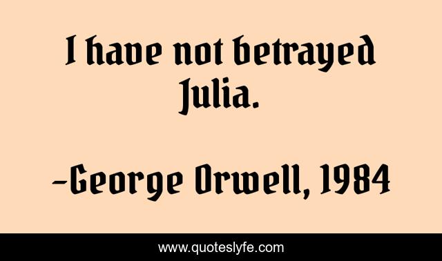 This page presents the quote "I have not betrayed Julia.". Author of this quote is George Orwell, 1984. This quote is about betrayal, lovers, love, affection,.