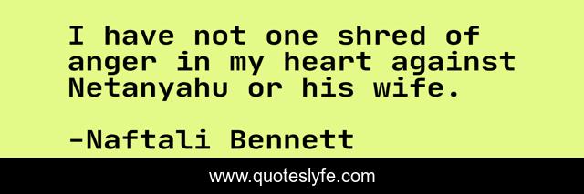 This page presents the quote "I have not one shred of anger in my heart against Netanyahu or his wife.". Author of this quote is Naftali Bennett. This quote is about heart, against, wife,.