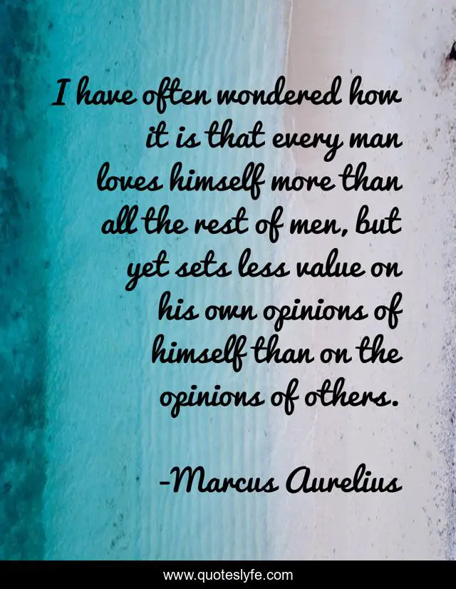 This page presents the quote "I have often wondered how it is that every man loves himself more than all the rest of men, but yet sets less value on his own opinions of himself than on the opinions of others.". Author of this quote is Marcus Aurelius. This quote is about opinions, value, man,.