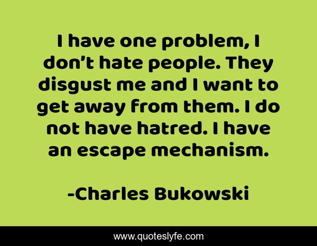 I have one problem, I don’t hate people. They disgust me and I want to get away from them. I do not have hatred. I have an escape mechanism.